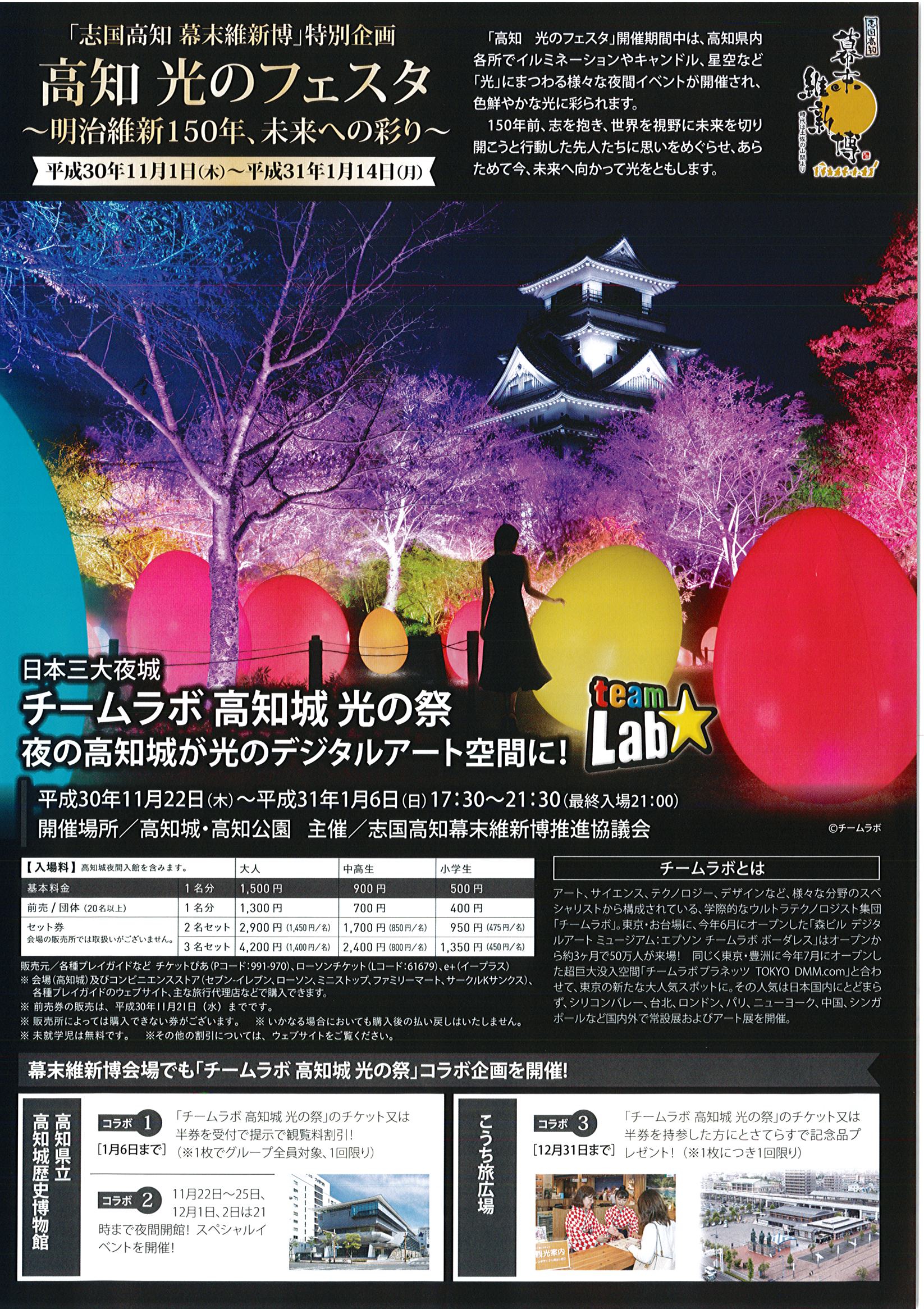 18年11月22日 19年1月6日 チームラボ 高知城 光の祭 お得な前売券は11月21日まで チケット販売場所 購入方法 まいこうち